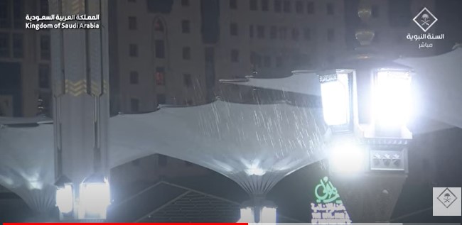 وأظهر مقطع فيديو زخات المطر وهي تغسل المسجد النبوي في الوقت الذي سارع فيه المصلون إلى المسجد لحضور الصلوات في ليلة 29 رمضان راجين الله أن تكون ليلة القدر فهي آخر الليالي الوترية في الشهر الكريم.