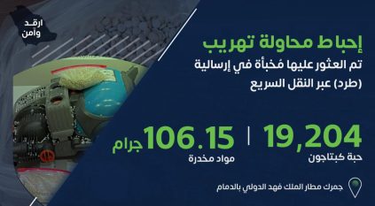 تمكّنت هيئة الزكاة والضريبة والجمارك في منفذ البطحاء من إحباط محاولة تهريب كمية من حبوب الكبتاجون بلغت (4,152,000) حبة، عُثِر عليها مُخبأة في إرسالية واردة إلى المملكة عبر المنفذ.