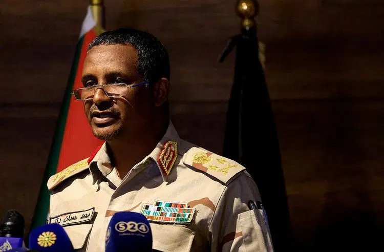 دعا قائد قوات الدعم السريع في السودان، محمد حمدان دقلو المعروب بـ حميدتي، المجتمع الدولي، للتحرك فورًا ضد ما وصفه بـ جرائم رئيس مجلس السيادة في السودان عبد الفتاح البرهان، واصفًا إياه بالمتطرف الذي يقصف المدنيين من الجو.