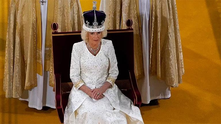 وارتدت كاميلا الملكة القرينة لتشارلز تاجًا مستخدمًا، إذ صرح قصر بكنغهام أنها سترتدي تاج الملكة ماري خلال مراسم التتويج، وذلك لتجنب وضع التاج المرصع بالألماسة “كوه آي نور”، التي تطالب الهند باستعادتها. وبذلك ستتفادى الملكة الجديدة أزمة دبلوماسية.