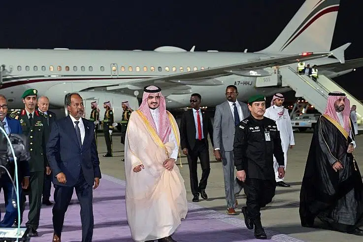 وكان في استقبال فخامته بمطار الملك عبدالعزيز الدولي، صاحب السمو الملكي الأمير بدر بن سلطان بن عبدالعزيز نائب أمير منطقة مكة المكرمة، ومعالي الأمين العام لجامعة الدول العربية أحمد أبو الغيط، وسفير خادم الحرمين الشريفين لدى جمهورية الصومال، أحمد بن محمد صالح المولد، ومدير شرطة منطقة مكة المكرمة اللواء صالح الجابري، ووكيل المراسم الملكية الأستاذ فهد الصهيل.