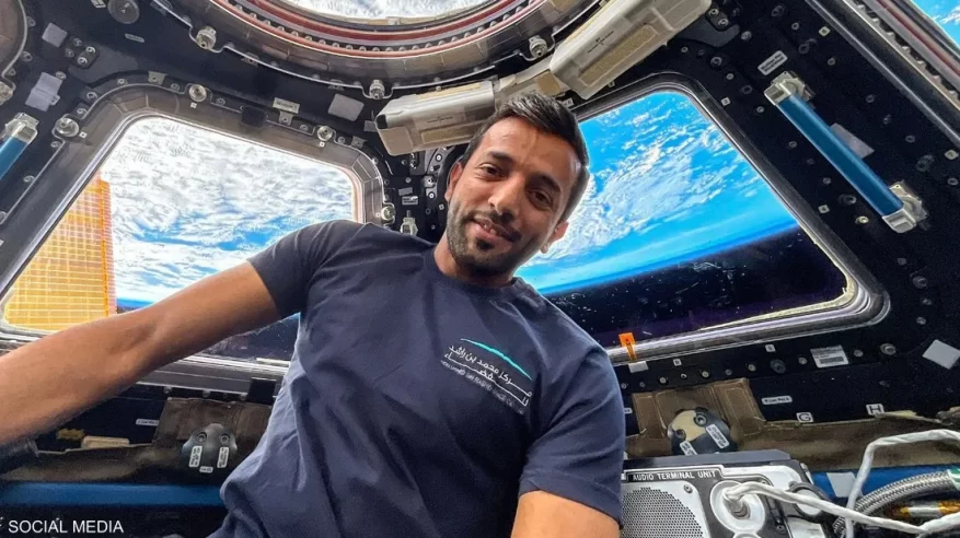 وجه رائد الفضاء الإماراتي سلطان النيادي، رسالة أخيرة إلى علي القرني وريانة برناوي، رائدي الفضاء السعوديين، قبل انطلاقهم إلى الفضاء في رحلة تاريخية مساء اليوم الأحد.