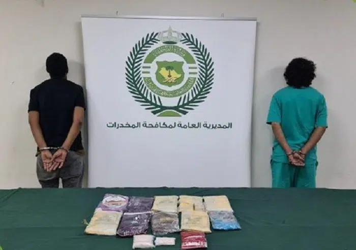 وذكرت مكافحة المخدرات عبر حسابها الرسمي بموقع “تويتر”، أنه جرى إيقافهما واتخاذ الإجراءات النظامية بحقهما، وإحالتهما إلى النيابة العامة.