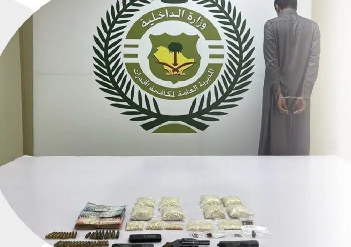 قبضت المديرية العامة لمكافحة المخدرات على مواطن بمنطقة الجوف؛ لترويجه مادة الإمفيتامين المخدر ومادة الحشيش المخدر وأقراصًا خاضعة لتنظيم التداول الطبي، وضبط بحوزته سلاحان ناريان وذخيرة حية ومبلغ مالي، وجرى إيقافه واتخاذ الإجراءات النظامية بحقه، وإحالته إلى النيابة العامة.