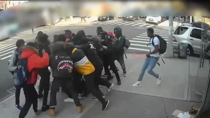وبدأت موجة اللكمات على الرصيف، لكنها استمرت إلى الشارع، حيث سقطت الضحية على الأرض، بحسب المقطع الذي نشره حساب ويليامزبرغ نيوز على تويتر، كما يظهر أن بعض أفراد المجموعة العدوانية، التي ضمت شبان وفتيات، قاموا بركل الضحية عندما كانت على الأرض.