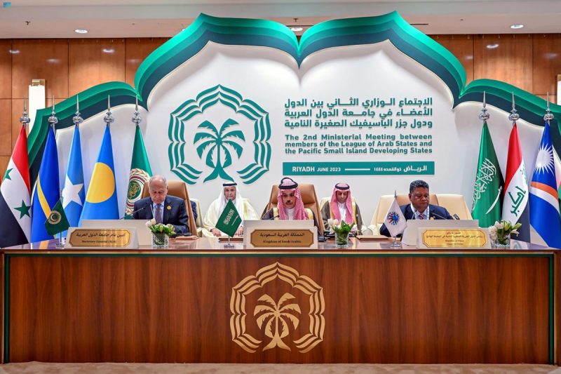 رأس صاحب السمو الأمير فيصل بن فرحان بن عبد الله وزير الخارجية، اليوم، الاجتماع الوزاري الثاني بين الدول الأعضاء في جامعة الدول العربية ودول جزر الباسيفيك الصغيرة النامية، الذي تستضيفه السعودية في العاصمة الرياض.