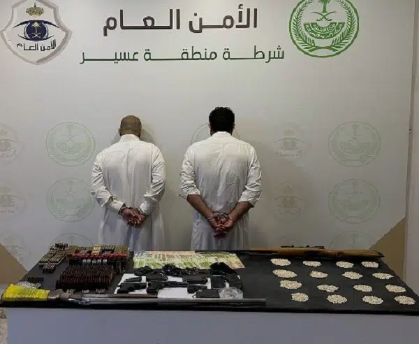 وذكر الأمن العام عبر حسابه الرسمي بموقع “تويتر” أنه تم ضبط بحوزتهما أسلحة نارية وذخيرة حية ومبالغ مالية، وجرى إيقافهما واتخاذ الإجراءات النظامية بحقهما وإحالتهما إلى جهة الاختصاص.