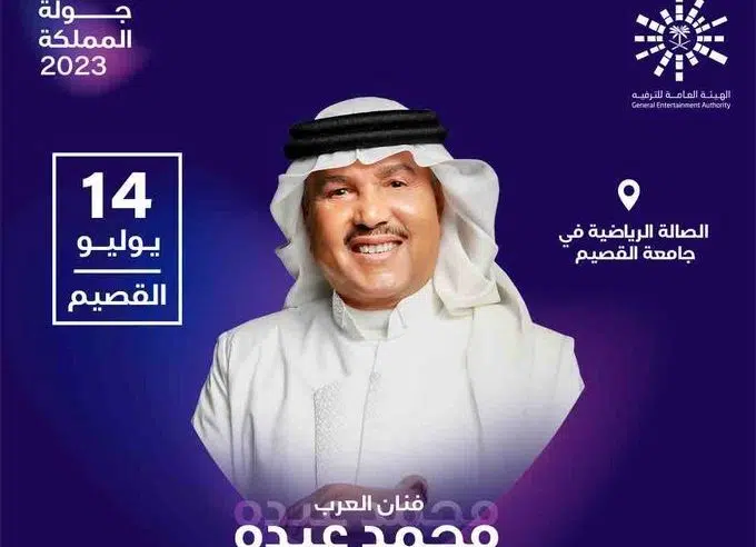 ونوهت الهيئة، في تغريدة عبر موقع تويتر، أنه من المقرر أن يكون حفل الفنان محمد عبده يوم 14 يوليو الجاري، مشيرة إلى أن التذاكر متاحة بدءًا من غدٍ 10 يوليو عبر الرابط الإلكتروني.