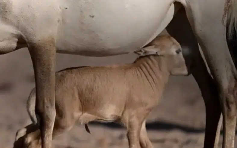 كشف المركز الوطني لتنمية الحياة الفطرية، اليوم الأربعاء، عن أولى خطوات الجيل الأول من صغار المها العربي في براري نيوم، التي تمت ولادتها بعد غياب امتد لأكثر من 100 عام.