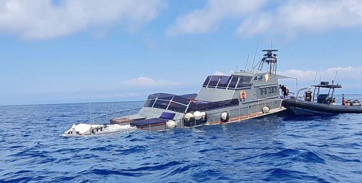 وقالت الشرطة المحلية إنه تم إنقاذ سبعة أشخاص كانوا على متنها في أعقاب الحادث ، لكن انتهى المطاف بالقارب على عمق حوالي 2500 متر (8200 قدم).