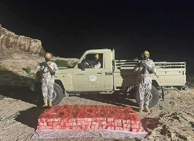 صرّح المتحدث الرسمي للمديرية العامة لحرس الحدود، العقيد مسفر القريني، بأن الدوريات البرية لحرس الحدود في مناطق نجران وجازان وعسير والشرقية، أحبطت محاولات تهريب (39) طنًا و(447) كيلوجرامًا من نبات القات المخدر، و(837) كيلوجرامًا من مادة الحشيش المخدر، و(336,694) قرصًا من مادة الإمفيتامين المخدر، و(478,620) قرصًا خاضعًا لتنظيم التداول الطبي، وقبضت على المشاركين في تهريبها، وجرى استكمال الإجراءات النظامية الأولية بحقهم، وتسليمهم والمهربات لجهة الاختصاص.