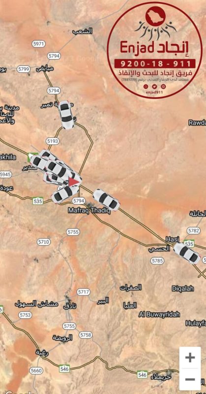 أعلن فريق إنجاد للبحث والإنقاذ، العثور على مفقود عشيرة سدير متوفى، بعد عمليات بحث استخدمت فيها نحو 40 مركبة للعثور عليه.
