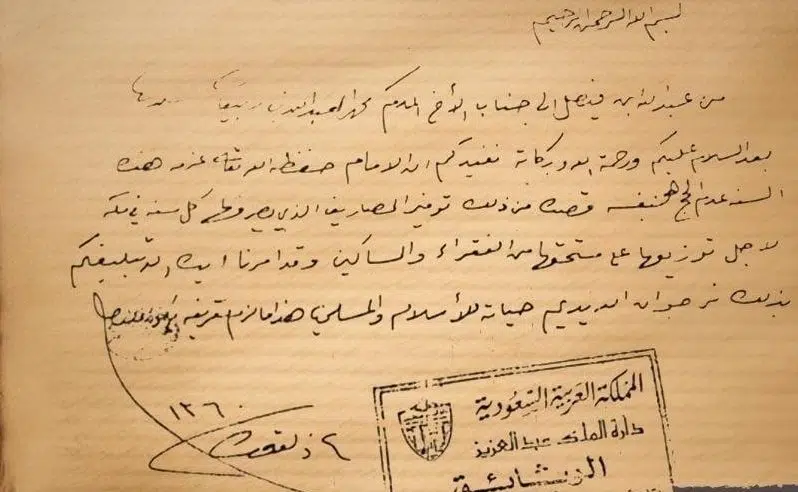 نشرت دارة الملك عبدالعزيز وثائق تاريخية نادرة يصل عمر بعضها إلى 100 عام تقريباً، تتضمن رسائل الملك عبدالعزيز إلى والده الإمام عبدالرحمن الفيصل – رحمهما الله- وإلى بعض أخواته، وأخرى إلى بعض المسؤولين في الجهات الحكومية.