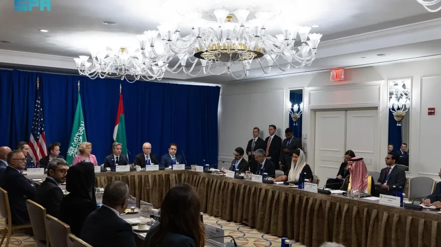 قد صاحب السمو الأمير فيصل بن فرحان بن عبد الله وزير الخارجية، اليوم، اجتماعاً مع سمو الشيخ عبد الله بن زايد آل نهيان وزير خارجية دولة الإمارات العربية المتحدة، ومعالي وزير خارجية الولايات المتحدة الأمريكية أنتوني بلينكن، وذلك على هامش أعمال الجمعية العامة للأمم المتحدة بدورتها الـ 78.