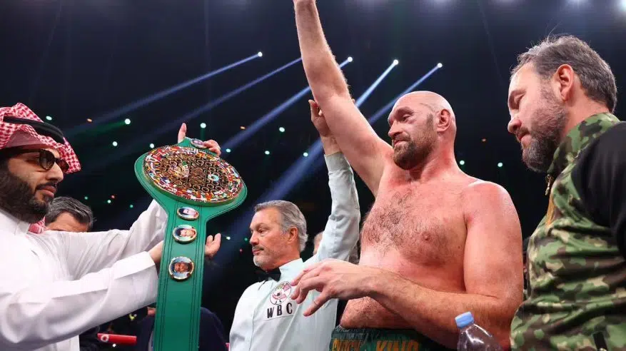 وفي وقت سابق، وضمن فعاليات افتتاح النسخة الرابعة من موسم الرياض، توّج رئيس مجلس إدارة الهيئة العامة للترفيه المستشار تركي بن عبدالمحسن آل الشيخ، أول أمس في منطقة Kingdom Arena بطل المجلس العالمي للملاكمة في الوزن الثقيل تايسون فيوري بحزام موسم الرياض بعد تغلبه على منافسه بطل الفنون القتالية المختلطة في الوزن الثقيل فرانسيس انجانو.