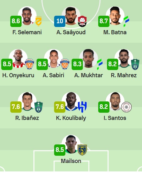 وجاء التشكيل المثالي للجولة العاشرة من دوري روشن السعودي، كالتالي؛ حارس مرمى التعاون، مايلسون، وفي الدفاع كل من؛ روجر إيبانيز “الأهلي”، كاليدو كوليبالي “الهلال” وإياغو سانتوس “الشباب”.