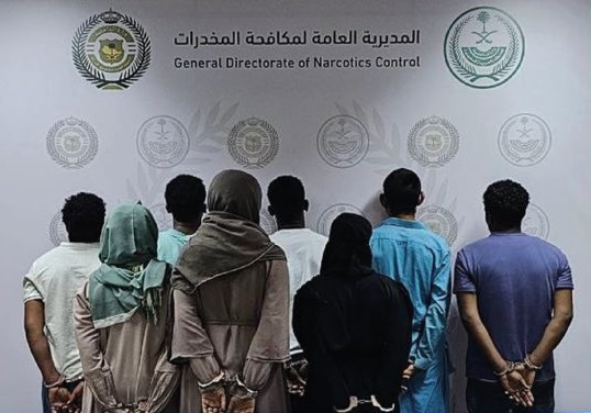 قبضت المديرية العامة لمكافحة المخدرات على (5) مخالفين لنظام أمن الحدود من الجنسية الإثيوبية ومقيمين من الجنسية نفسها ومقيم من الجنسية الباكستانية بمحافظة جدة لترويجهم (4.3) كيلوجرام من مادة الحشيش المخدر، وجرى إيقافهم واتخاذ الإجراءات النظامية بحقهم، وإحالتهم إلى النيابة العامة.