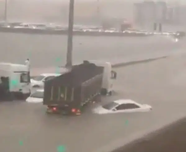 وأظهر المقطع، مجموعة من السيارات احتجزتها مياه الأمطار بعد الحالة المطرية الغزيرة، كما شهدت الدمام تساقط البرد بأحجام كبيرة مما تسبب في تهشيم زجاج السيارات.