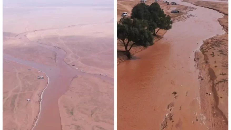 واستطاع المصور “عبدالله العمير” أن يوثق جماليات الموقع من خلال التصوير الجوي الذي يجمع وادي أبو نخلة بسيوله من مساحة واسعة لتشمل جبل الرحى (يبلغ ارتفاعه 960م) وجنوب جبل الإصبعة (يبلغ ارتفاعه 879م).