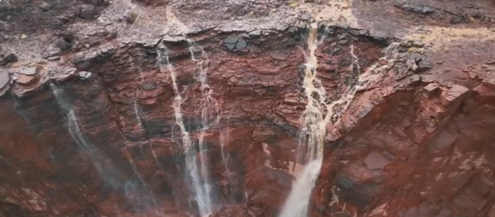 وأظهر مقطع فيديو تساقط الشلالات من المرتفعات الجبلية حيث انسابت المياه إلى الأودية والشعاب وسط توقعات باستمرار مزيد من أمطار الخير والبركة.