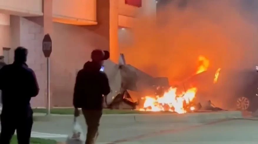 اصطدمت طائرة صغيرة بمركز للتسوق في ولاية تكساس؛ مما أسفر عن مقتل الطيار وتسبب في اشتعال النيران في سيارة كانت تنتظر بجوار المول التجاري. وأكدت السلطات أنه لم يصب أحد على الأرض.