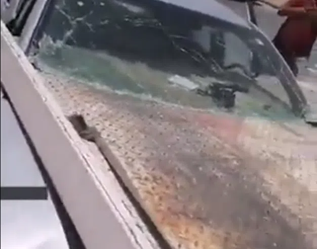 وكما ظهر في المقطع، تحطم زجاج المركبة تمامًا، حيث نجا قائد المركبة من الموت المحقق.