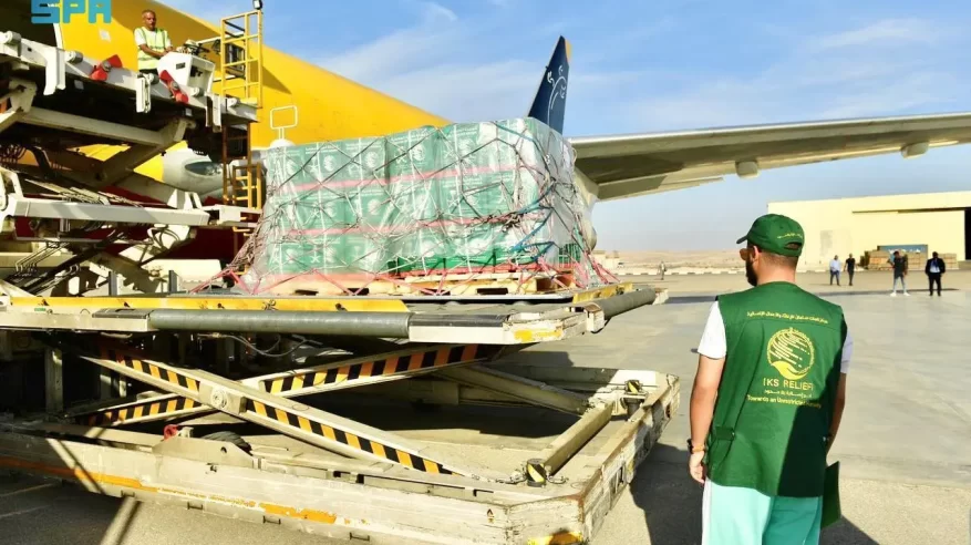 وصلت إلى مطار العريش الدولي بجمهورية مصر العربية اليوم, الطائرة الإغاثية السعودية الثانية، تحمل على متنها مساعدات إغاثية متنوعة شملت مواد غذائية وإيوائية بوزن إجمالي يبلغ 35 طناً، تمهيداً لنقلها إلى المتضررين داخل قطاع غزة، وذلك ضمن الحملة الشعبية لإغاثة الشعب الفلسطيني الشقيق في قطاع غزة، التي وجه بها خادم الحرمين الشريفين الملك سلمان بن عبدالعزيز آل سعود وصاحب السمو الملكي الأمير محمد بن سلمان بن عبدالعزيز ولي العهد رئيس مجلس الوزراء – حفظهما الله-.