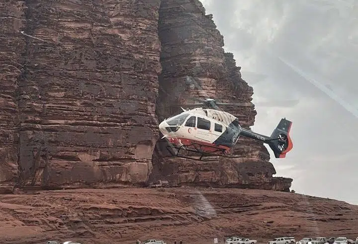 وقال الهلال الأحمر السعودي إن الفرق الإسعافية والإسعاف الجوي باشرت حادث تصادم على طريق شرما بمنطقة تبوك نتج عنه إصابتان.