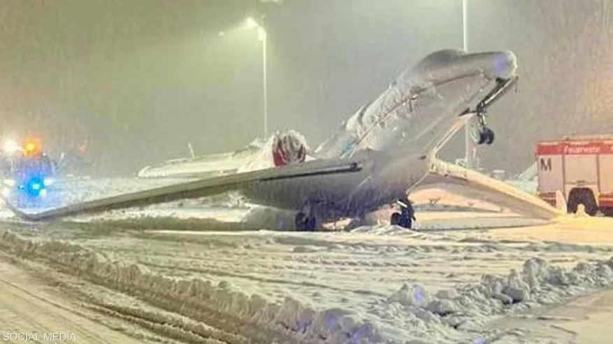 وأظهر مقطع فيديو متداول الطائرة وقد علقت بالثلوج والتصقت بالأرض، بينما كانت مقدمتها مرفوعة للأعلى.