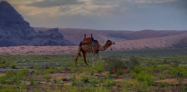 وأظهر مقطع فيديو مذهل أجواء وجمال تضاريس جبة في حائل، حيث امتدت المساحات الخضراء على مد البصر.