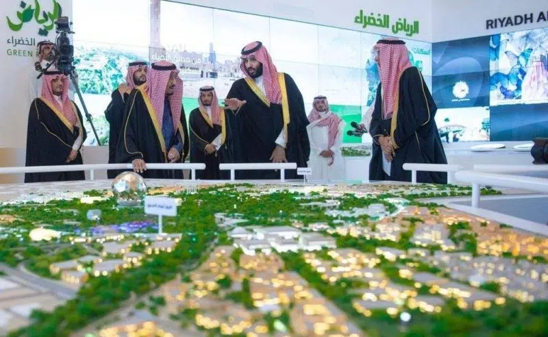 كما كانت الرياض قد أطلقت مبادرتي “السعودية الخضراء” و “الشرق الأوسط الأخضر” حيث سعت من خلال مبادرة” السعودية الخضراء” إلى تحقيق أهداف الاستدامة في المملكة من خلال الإشراف على جميع الجهود وتوحيدها لمكافحة تغير المناخ تحت مظلة واحدة وبأهداف واضحة، كما تهدف المبادرة إلى تقليل الانبعاثات الكربونية بمقدار 278 مليون طن سنوياً بحلول عام 2030 وتسريع رحلة الانتقال الأخضر للمملكة والحد من تداعيات تغير المناخ، كما تسعى “السعودية الخضراء” إلى زراعة 10 مليارات شجرة في جميع أنحاء المملكة، وتلتزم بإعادة تأهيل 40 مليون هكتار من الأراضي واستعادة المساحات الخضراء الطبيعية في المملكة، كما هدفت المملكة من خلال مبادرة “الشرق الأوسط الأخضر” إلى توسيع التعاون الإقليمي وإنشاء بنية تحتية كفيلة بخفض الانبعاثات وحماية البيئة.