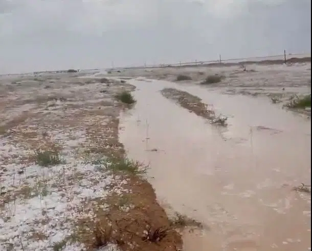 وثق مقطع فيديو متداول، تساقط كثيف للبرد على أحياء الدليمية بمنطقة القصيم، مساء اليوم الخميس.