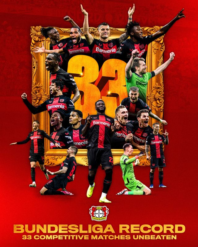 ويسير الفريق الأول لكرة القدم بنادي باير ليفركوزن بقيادة تشابي ألونسو بشكل مميز في الدوري الألماني الممتاز هذا الموسم، حيث إنه لم يتحقق لأي هزيمة، ونجح في تحقيق الفوز 19 مرة، وتعادل 4 مرات فقط.