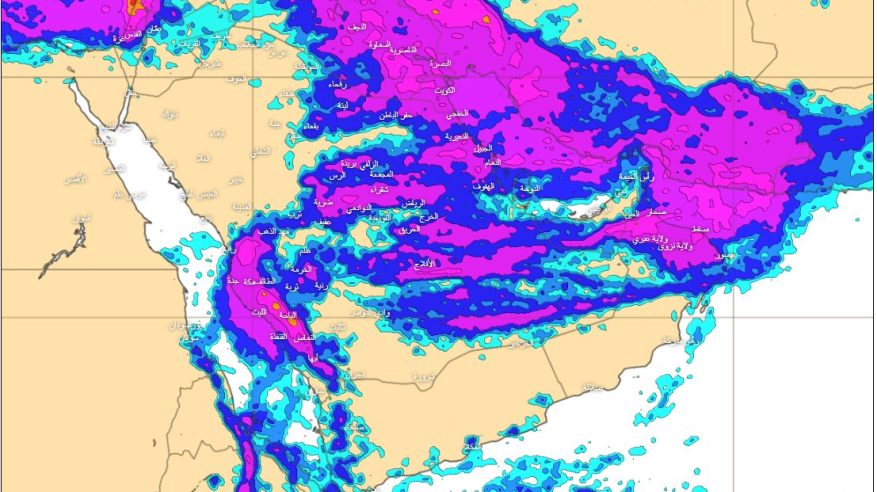 وأضاف أن نطاق تأثير الحالة الممطرة – إن شاء الله – سيمتد على أجزاء متفرقة من مناطق مكة والرياض والشرقية والباحة وعسير وجازان ونجران ثم تمتد نواحي مناطق المدينة وتبوك والجوف والحدود الشمالية والقصيم وحائل تمتد إلى دول عُمان والإمارات وقطر والبحرين والكويت واليمن.