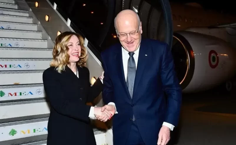 وكانت رئيسة وزراء إيطاليا وصلت إلى مطار رفيق الحريري الدولي يوم أمس، وكان في استقبالها رئيس حكومة تصريف الأعمال في قاعة كبار الزوار، قبل أن ينتقلا إلى السرايا، حيث أقيمت لرئيسة وزراء إيطاليا مراسم الاستقبال الرسمية، قبل أن ينتقلا إلى مكتب رئيس الحكومة لعقد المحادثات الرسمية.