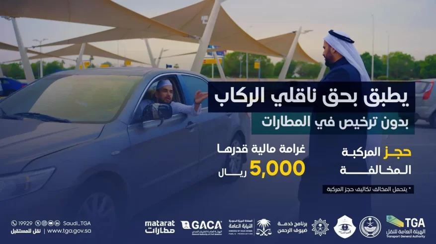 أعلنت الهيئة العامة للنقل عن حجز المركبة كإجراء حديث لمخالفي نشاط نقل الركاب في المطارات، إضافة إلى غرامة مالية قدرها 5,000 ريال؛ وذلك بهدف توفير تجربة تنقل سلسة وآمنة ومريحة للمسافرين، وبما يعزز من جودة الخدمات المقدّمة، في ظل توفر العديد من خيارات التنقل في المطارات.