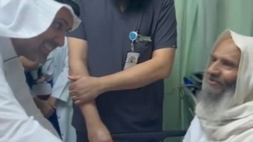 وتبادل الوزير أطراف الحديث مع المسن الذي دعا للمسلمين أجمعين بأن يكتب لهم الله الخير ويحفظهم جميعًا.