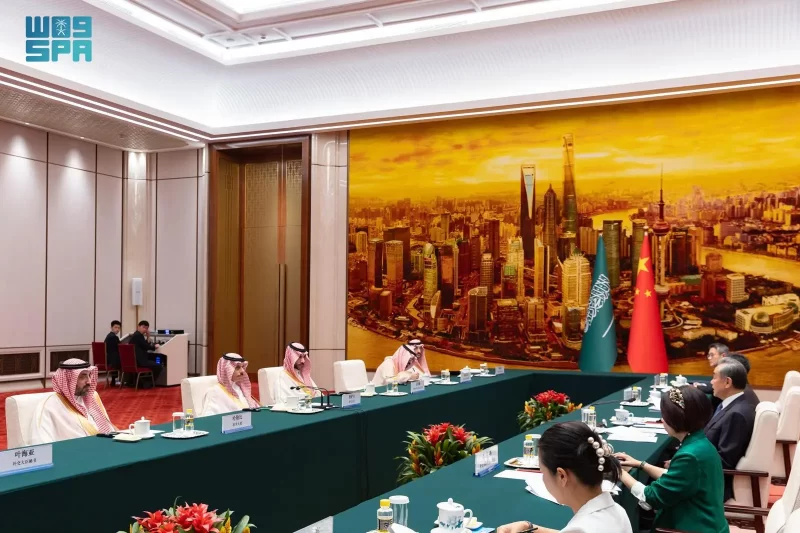 واستعرض الجانبان العلاقات السعودية – الصينية وسبل تعزيزها في شتى المجالات، بالإضافة إلى مناقشة تكثيف التنسيق الثنائي ومتعدد الأطراف في العديد من القضايا ذات الاهتمام المشترك.