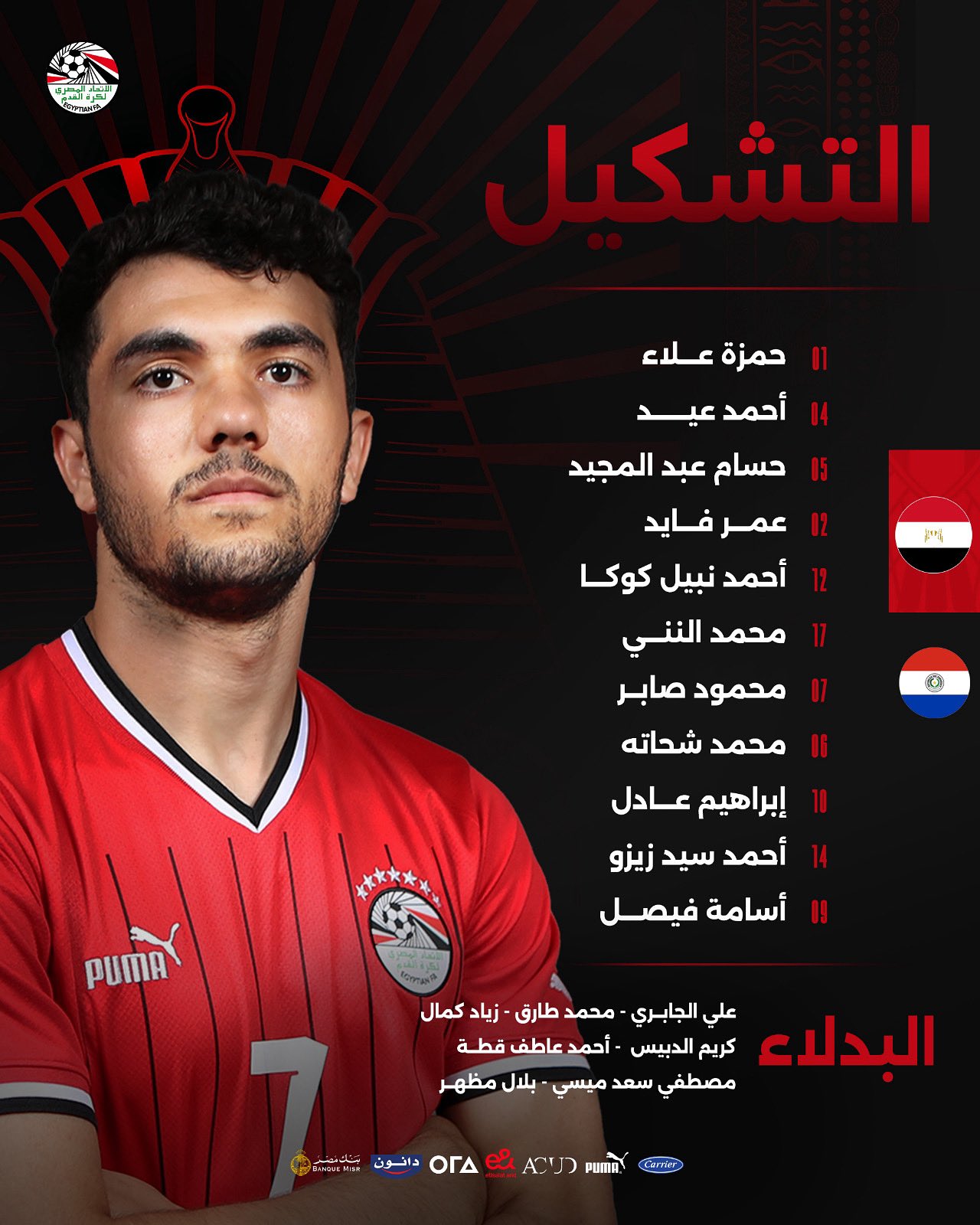 تشكيل مصر لمواجهة باراجواي