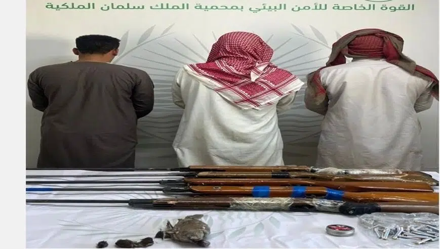 وبحسب الأمن البيئي على منصة إكس، كان بحوزة المخالفين، (5) بنادق هوائية، و(150) طلقة هوائية، و(6) كائنات فطرية مصيدة (دخلة عربية) وجهاز نداء لجذب الطيور، وجرى إيقافهم واتخاذ الإجراءات النظامية بحقهم، وإحالتهم إلى الجهة المختصة.