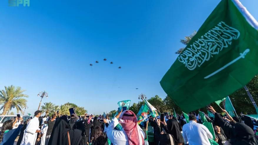 رسمت طائرات القوات الجوية الملكية السعودية لوحة؛ احتفاًء باليوم الوطني الـ 94 في سماء مدينة تبوك.
