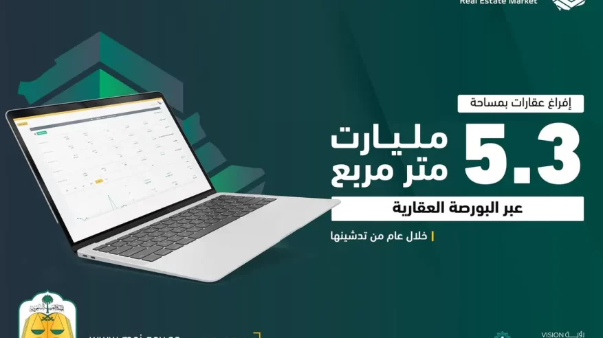 كشفت وزارة العدل عن إجمالي المساحات العقارية التي جرى إفراغها إلكترونياً عبر البورصة العقارية، خلال عام من تدشين البورصة، حيث بلغت أكثر من 5.3 مليارات متر مربع.