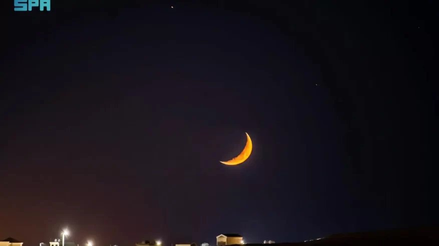 رُصد أمس, القمر مقترنًا بنجم “قلب العقرب” ونجم النياط في سماء مدينة عرعر بمنطقة الحدود الشمالية في مشهد بديع.