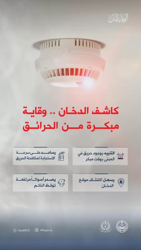 الدفاع المدني: كاشف الدخان ضرورة في المباني