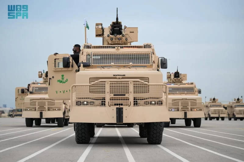 كما شاهد سموه عرضًا عسكريًا لقوات الحرس الوطني، شاركت به الآليات والعربات الحديثة المزودة بأحدث التقنيات العسكرية، التي أبرزت مدى جاهزيتهم، حاملين على عاتقهم ردع كل من تسول له نفسه المساس بأمن هذا الوطن الغالي.