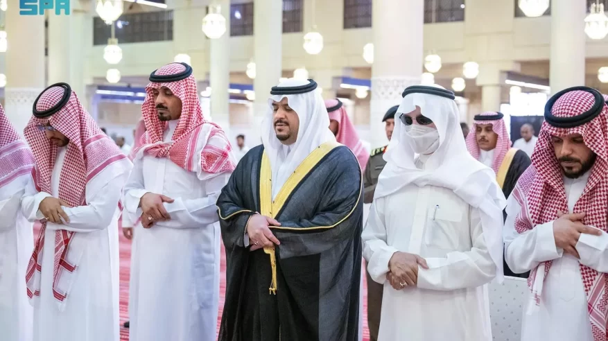 وأدى الصلاة مع سموه صاحب السمو الملكي الأمير فهد بن مساعد بن سعود بن عبدالعزيز، وصاحب السمو الملكي الأمير سعود بن فيصل بن مساعد بن سعود بن عبدالعزيز، وصاحب السمو الملكي الأمير نواف بن سيف الدين بن سعود بن عبدالعزيز، وصاحب السمو الملكي الأمير محمد بن فهد بن مساعد بن سعود بن عبدالعزيز، وصاحب السمو الملكي الأمير سلطان بن سيف الدين بن سعود بن عبدالعزيز، وصاحب السمو الملكي الأمير فواز بن سلمان بن فواز بن سعود بن عبدالعزيز، وصاحب السمو الملكي الأمير منصور بن نايف بن مساعد بن سعود بن عبدالعزيز.
