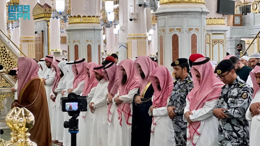 أدّى جموع المصلين في المسجد النبوي بالمدينة المنورة الليلة، صلاة الخسوف، اقتداءً بسنة النبي محمد- صلى الله عليه وسلم-، حيث اكتظّت أروقة المسجد وساحاته بالمصلين من الأهالي والمقيمين وزوار مدينة المصطفى- صلى الله عليه وسلم-.