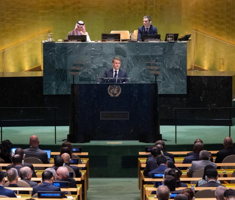 نيابةً عن صاحب السمو الملكي الأمير محمد بن سلمان بن عبدالعزيز آل سعود ولي العهد رئيس مجلس الوزراء -حفظه الله-، وبالشراكة مع فخامة رئيس الجمهورية الفرنسية إيمانويل ماكرون، ترأس صاحب السمو الأمير فيصل بن فرحان بن عبدالله وزير الخارجية، الجلسة الافتتاحية لأعمال المؤتمر الدولي لتسوية قضية فلسطين بالوسائل السلمية وتنفيذ حل الدولتين على مستوى القادة، المنعقد في مقر الجمعية العامة للأمم المتحدة بمدينة نيويورك.