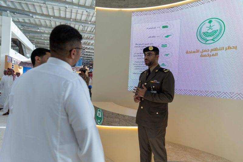 وتستعرض الإدارة العامة للأسلحة والمتفجرات بوزارة الداخلية في الجناح، اشتراطات رخص حمل واقتناء الأسلحة النارية الفردية، وأسلحة الصيد، والعقوبات المترتبة على مخالفي نظام الأسلحة والذخائر ولائحته التنفيذية، وتوضيح الخطوات النظامية للحصول على تراخيص الأسلحة، والتوعية بأحكام النظام.
