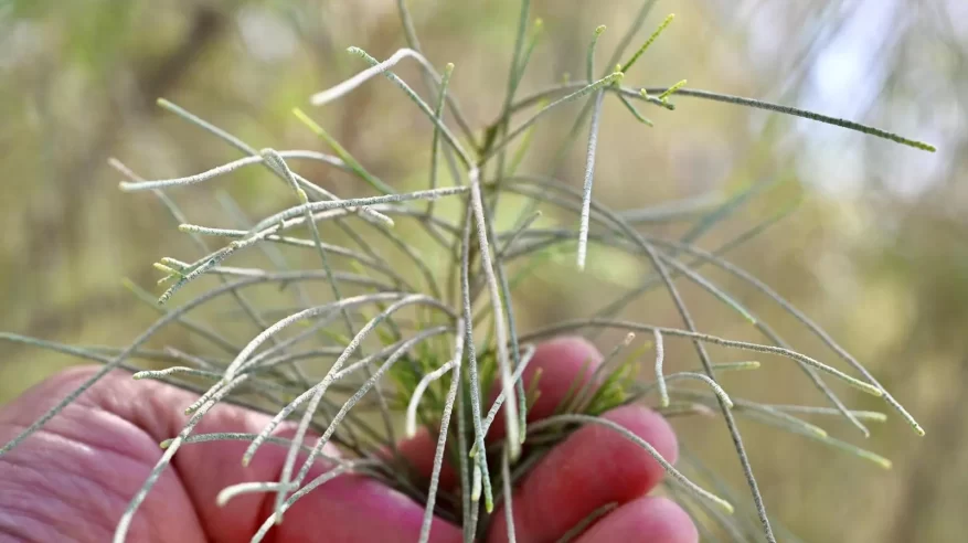 وتتميز هذه النبتة بجذور طويلة تمتد إلى أعماق كبيرة تحت التربة، وأغصان كثيفة وصغيرة وقصيرة، تتلون أوراقها باللون الرمادي المائل إلى اللون الأخضر، وتزهر أزهارها الوردية من نهاية الغصن أو من جذع الشجرة بكثافة مما يكسبها مظهرًا جميلًا، كما تنمو ثماره على شكل كبسولة تحتوي على العديد من البذور، وخصلات من الشعيرات على كلا طرفيها، يمتد طول أشجارها إلى ما يقارب 20 قدمًا.